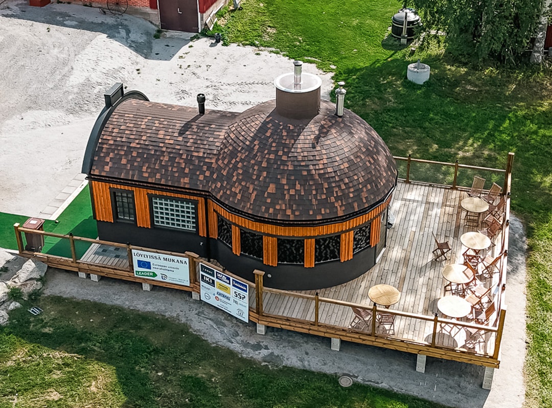 “Olihan se vähän askartelua, mutta lopputulos on niin hieno, että kyllä kannatti. Suosittelen ihan kaikkia tulemaan kokemaan pullosauna ja sen Pantheonin kaltainen kupolikatto, jonka keskellä olevasta kattoikkunasta valo laskeutuu upeasti löylyhuoneeseen” Purontaus kehottaa.