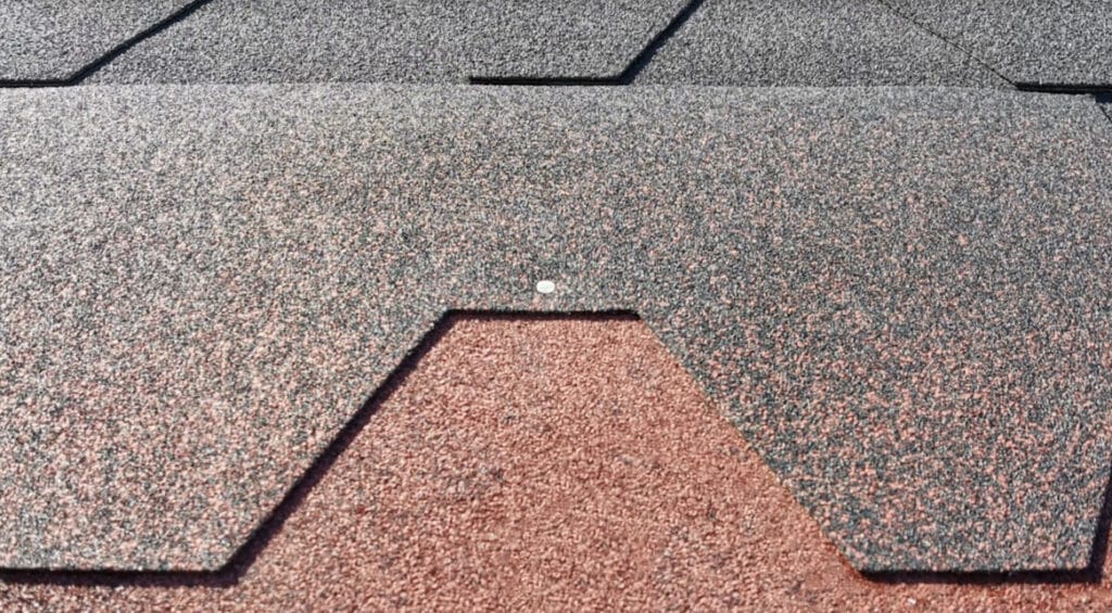 Tässä naula on osunut juuri vanhan kattolaattapinnan kärjen ”koloon”, jolloin koko laatta vääntyy ja lopputulos on epätasainen. Myös ylemmän laatan kärjen liimautuminen on epävarmaa epätasaisuuden takia.